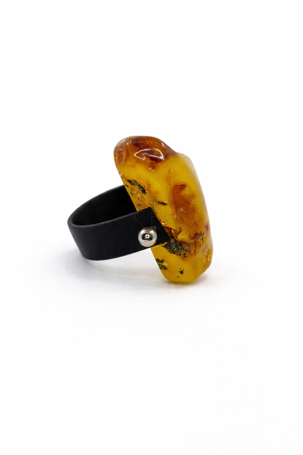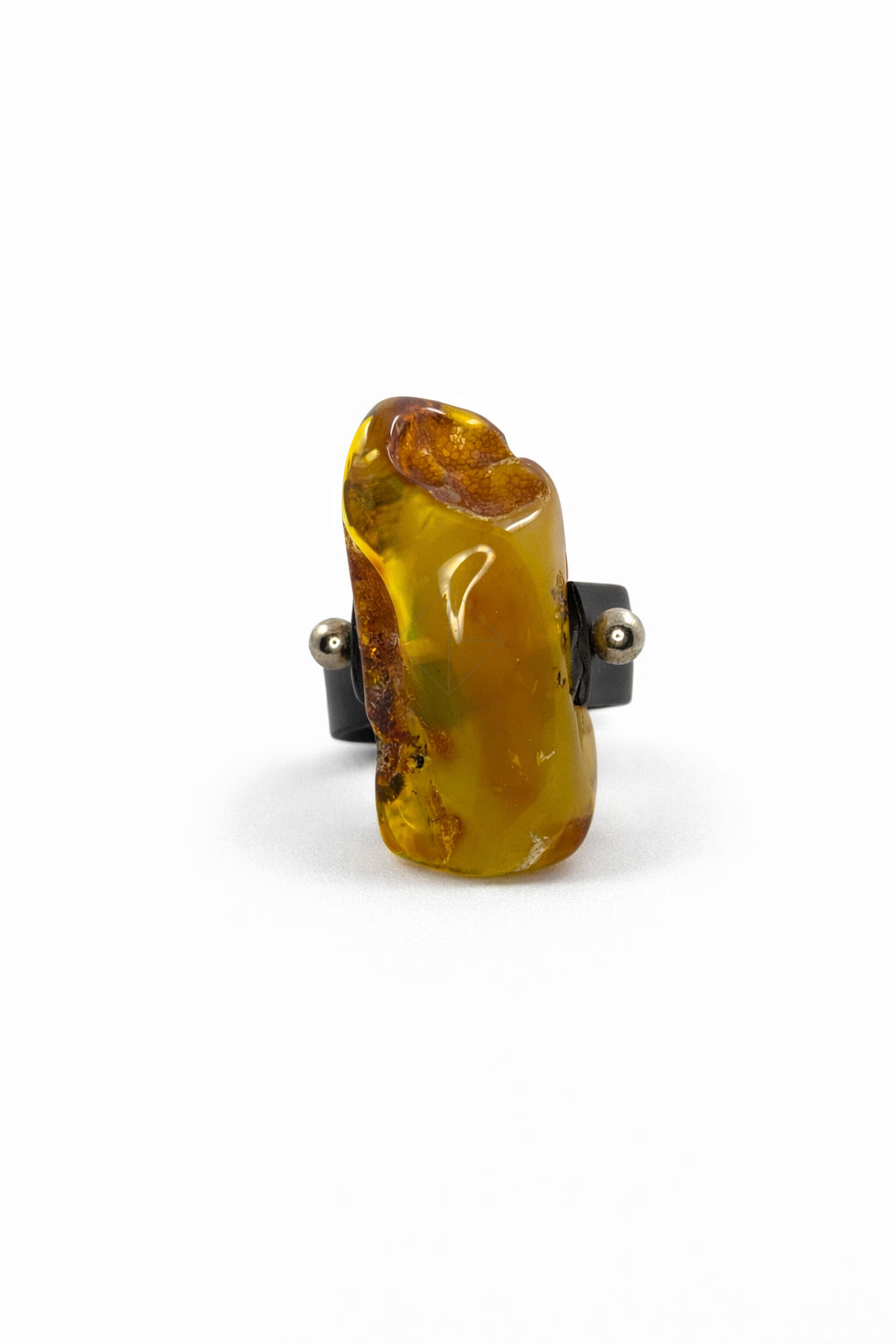 Pierścionek z naturalnym bursztynem w ciepłych, słonecznych odcieniach żółci i złota to wyjątkowa propozycja dla osób ceniących oryginalną i niepowtarzalną biżuterię. Nieregularna forma kamienia oraz widoczne naturalne inkluzje nadają mu unikalny charakter i podkreślają jego autentyczność.