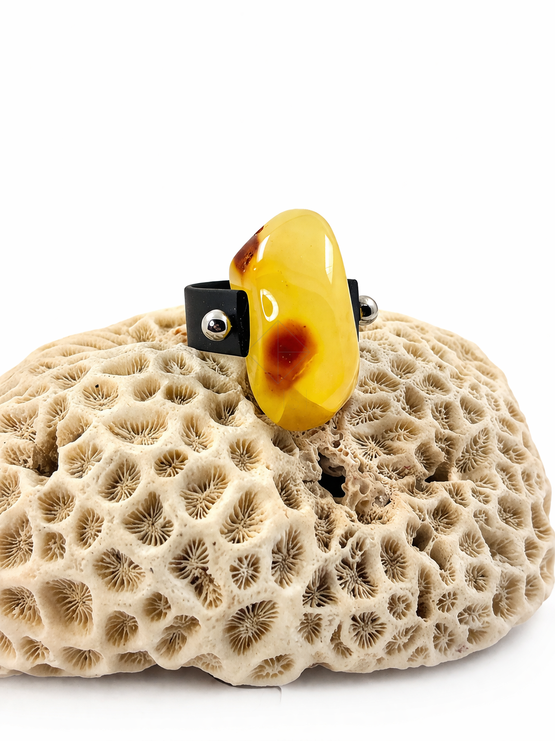 Elegancki pierścionek z naturalnym bursztynem w wyjątkowym, nieregularnym kształcie. Kamień zachwyca ciepłą, miodową barwą z charakterystycznymi, brązowymi inkluzjami, które nadają mu niepowtarzalny charakter. Każdy egzemplarz jest unikatowy, dzięki czemu masz pewność, że nosisz coś naprawdę wyjątkowego.
