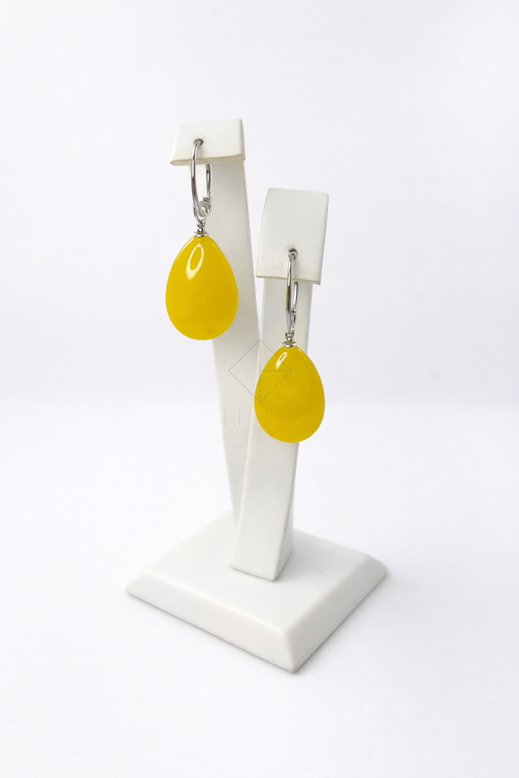 Eleganckie kolczyki w intensywnym, cytrynowo-żółtym odcieniu, które pięknie rozświetlają twarz i dodają lekkości każdej stylizacji. Gładka, łezkowata forma nadaje im subtelnej klasy i ponadczasowego charakteru.